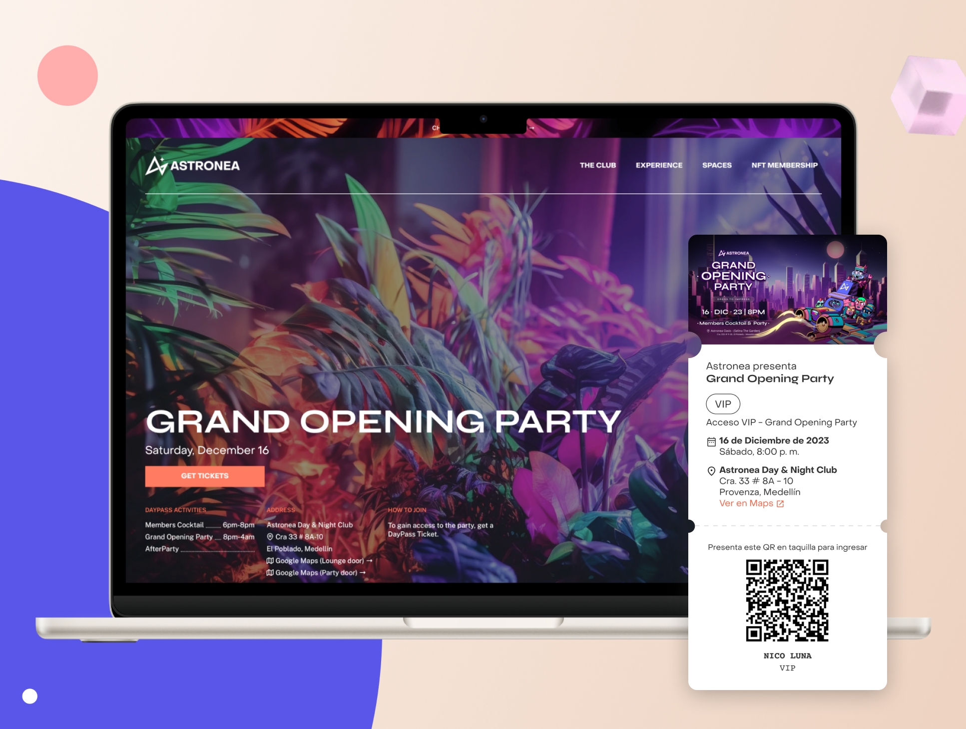 At Astronea, I played an integral role in the first NFT-based nightclub, a significant step into Web 3.0 for me. My role involved crafting the club's visual identity, coding the website, helping integrate blockchain for unique access and coding the event ticketing system. My work, acclaimed by both the founders and celebrities, was pivotal in bringing this innovative nightclub to life.